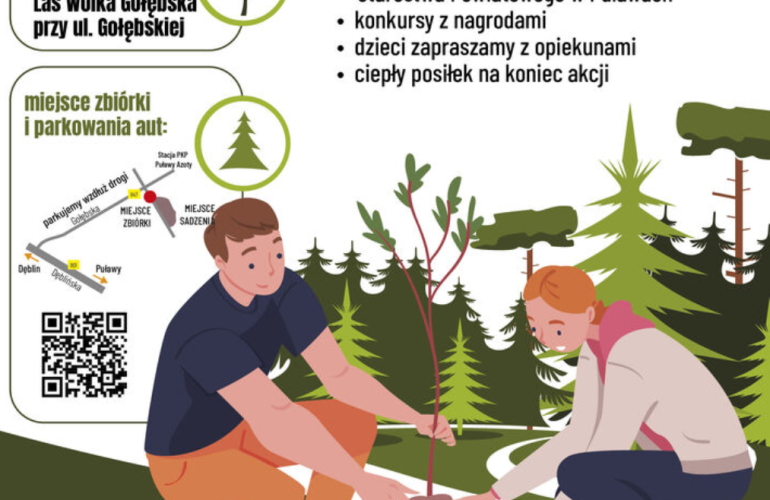 Starosta puławski Teresa Gutowska, wójt Gminy Puławy Kamil Lewandowski oraz nadleśniczy Nadleśnictwa Puławy Agata Dryglak zapraszają mieszkańców do udziału w wyjątkowej inicjatywie ekologicznej – rodzinnym sadzeniu lasu. Wydarzenie odbędzie się w sobotę, 11 kwietnia 2026 ...