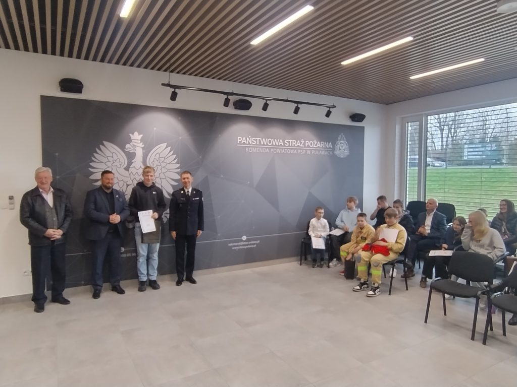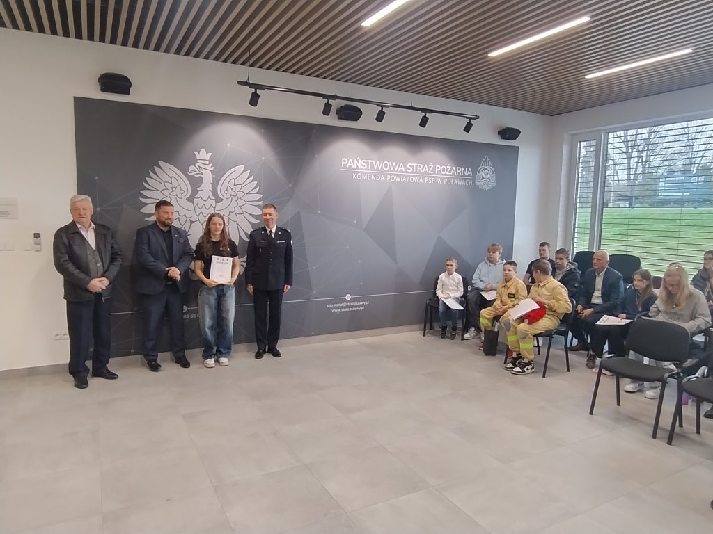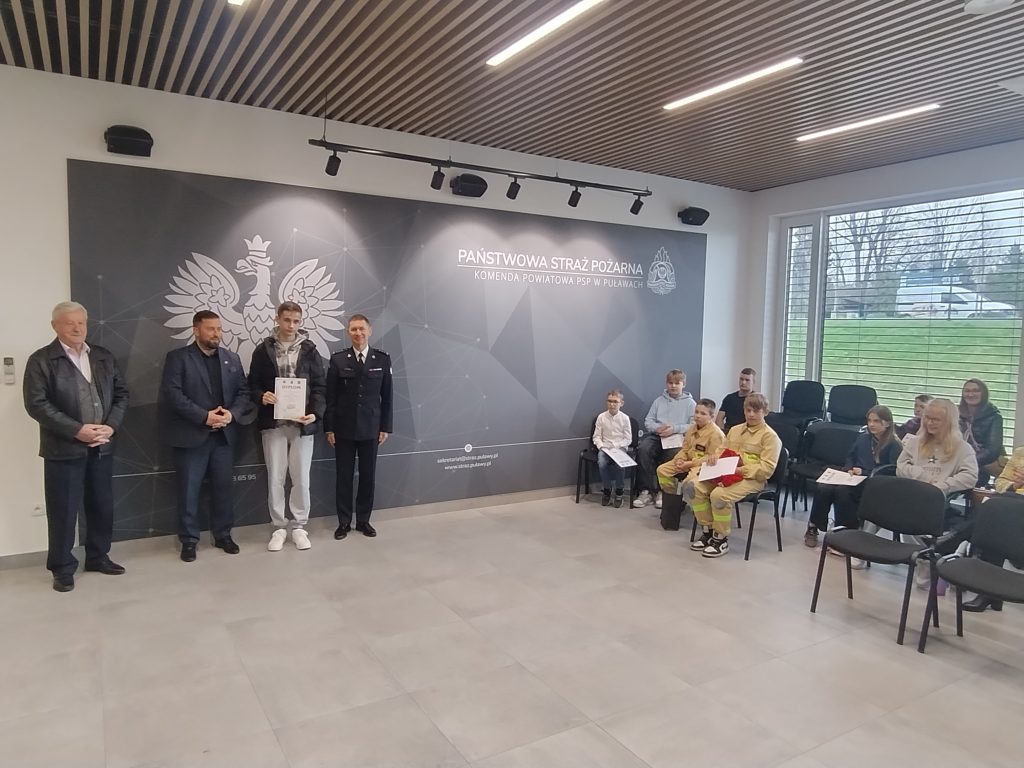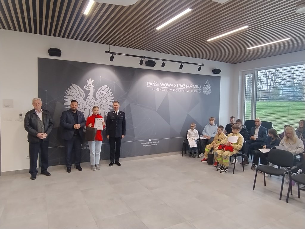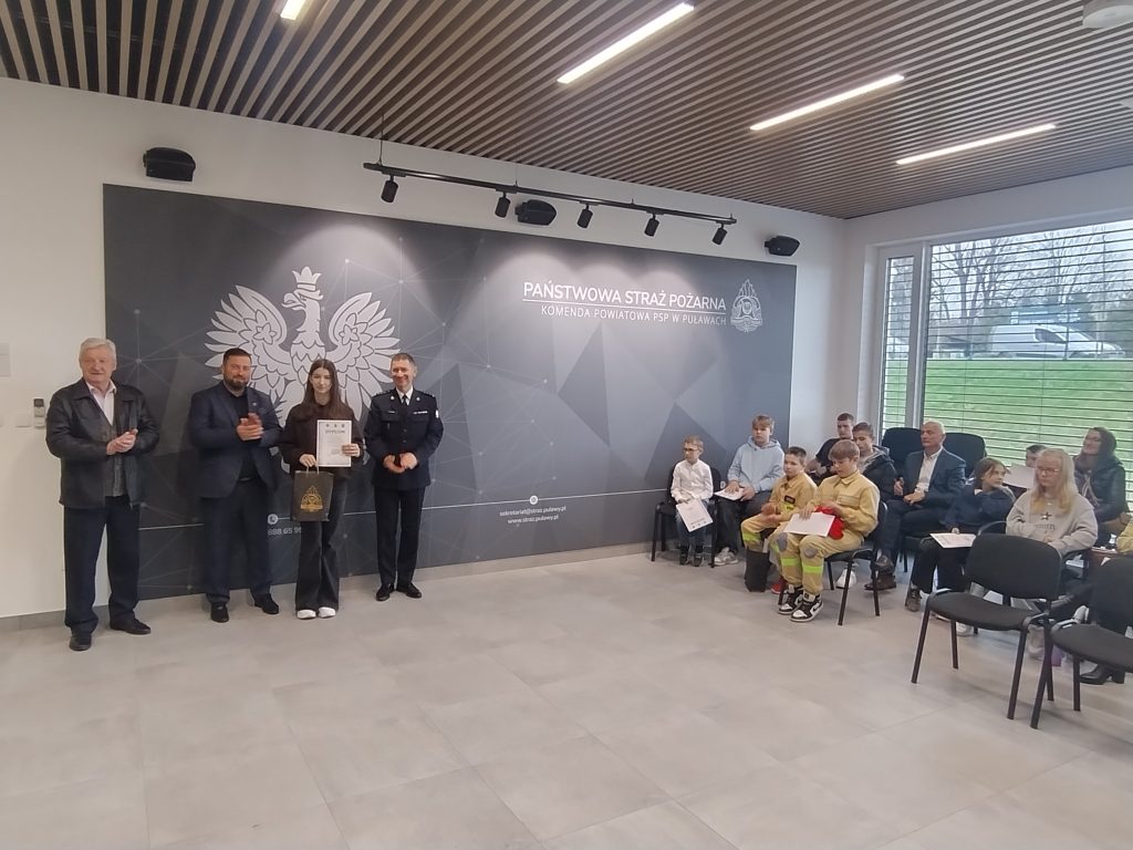 Laureaci otrzymali atrakcyjne nagrody w postaci sprzętu elektronicznego zakupione ze środków finansowych pochodzących z wpływów uzyskanych ze składek z tytułu obowiązkowego ubezpieczenia od ognia, przekazanych przez Oddział Wojewódzki Związku Ochotniczych Straży Pożarnych Rzeczypospolitej Polskiej oraz ze środków finansowych Powiatu Puławskiego.