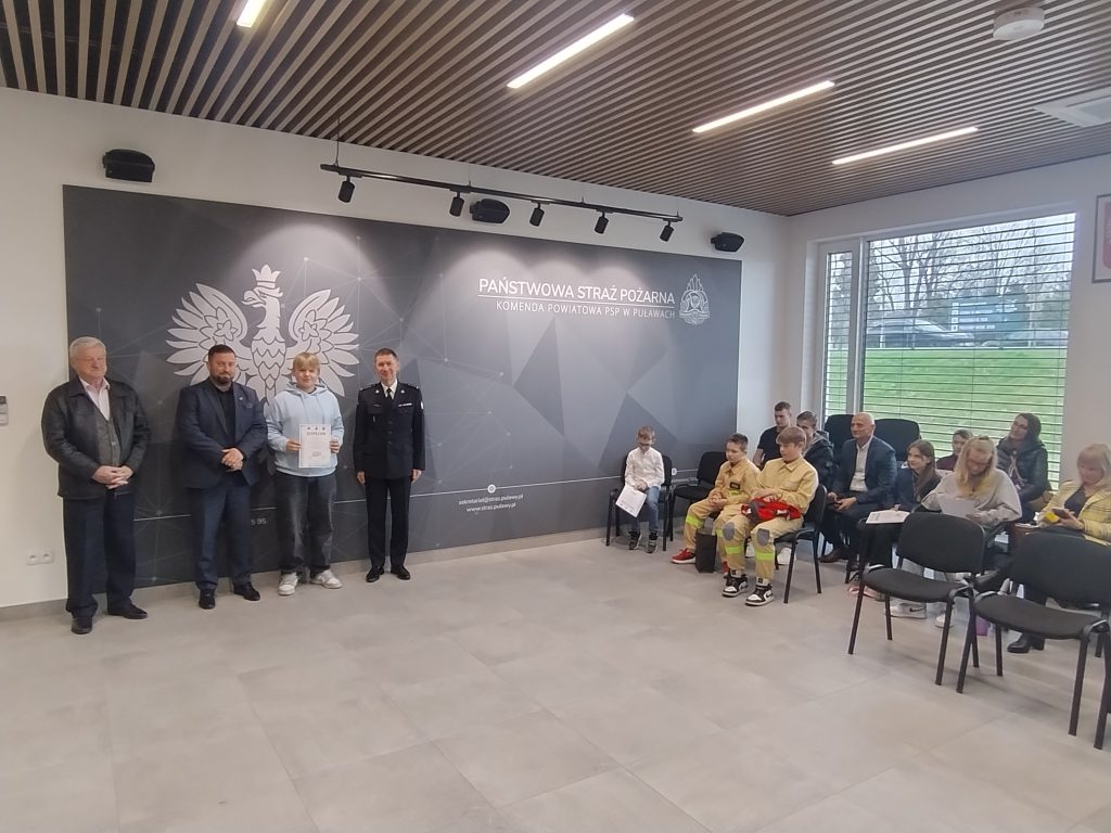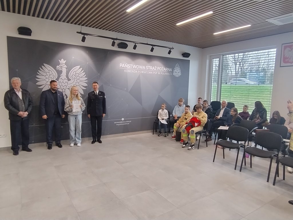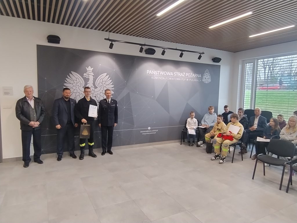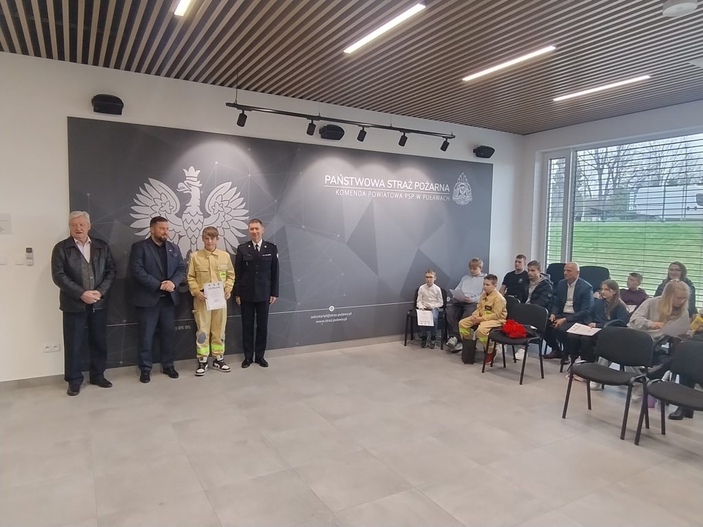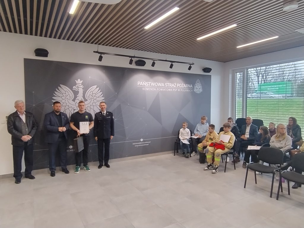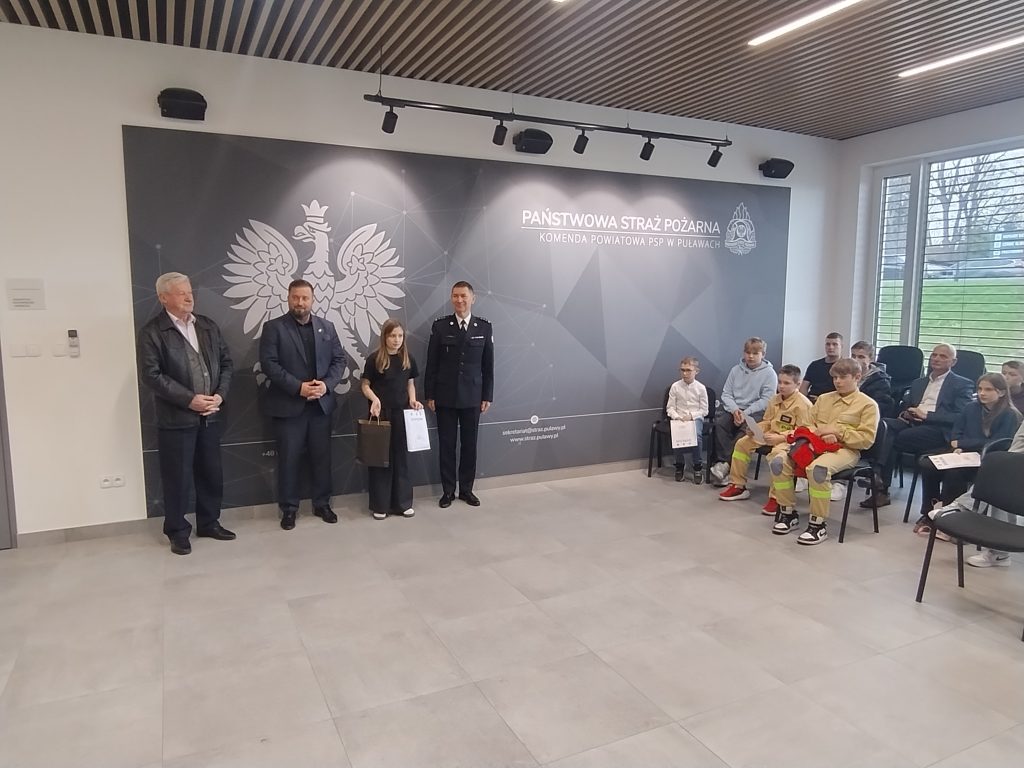 Laureaci otrzymali atrakcyjne nagrody w postaci sprzętu elektronicznego zakupione ze środków finansowych pochodzących z wpływów uzyskanych ze składek z tytułu obowiązkowego ubezpieczenia od ognia, przekazanych przez Oddział Wojewódzki Związku Ochotniczych Straży Pożarnych Rzeczypospolitej Polskiej oraz ze środków finansowych Powiatu Puławskiego.